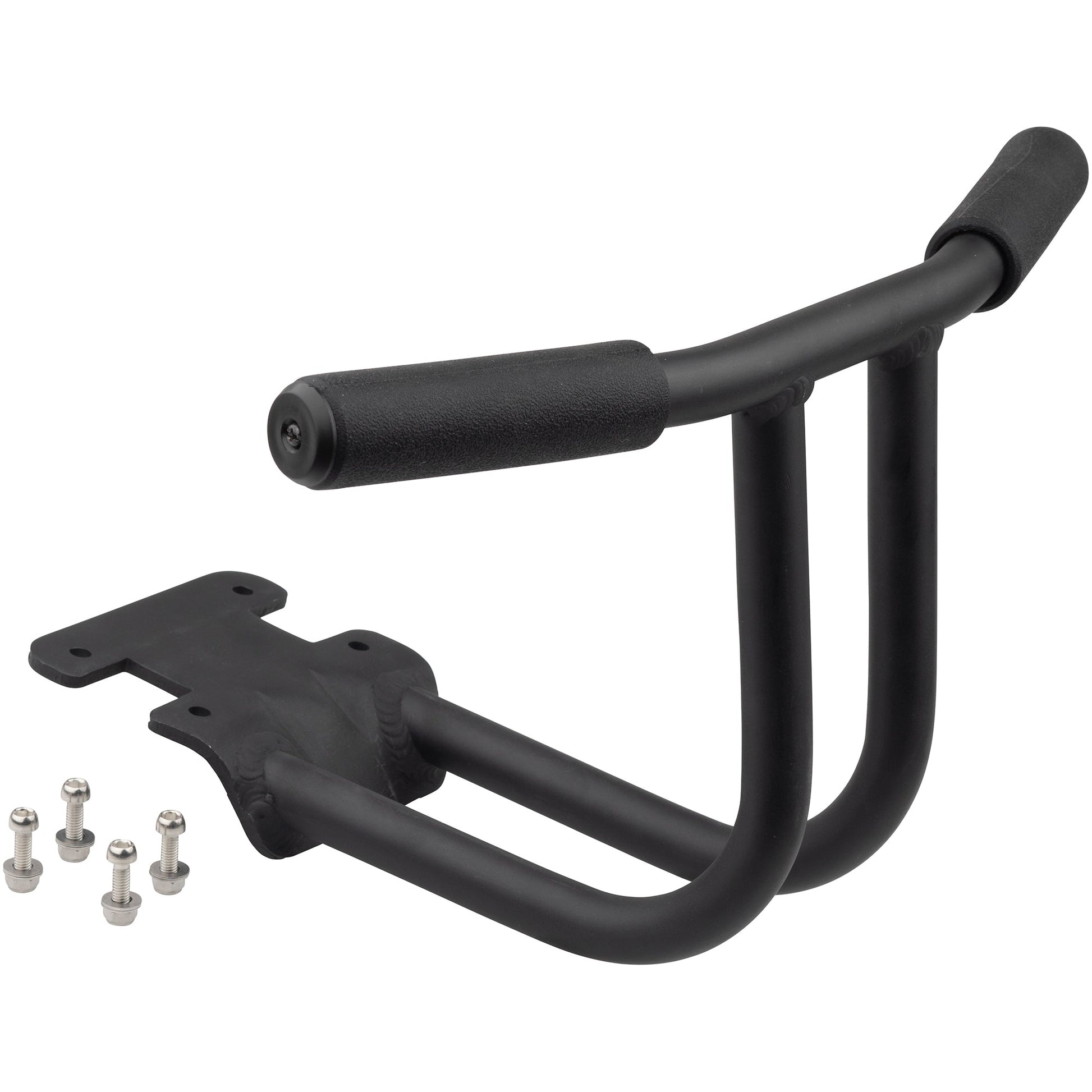 The Surly Deck Bar is just what it sounds like, a convenient handlebar that attaches to the rear deck of the Big Easy, Big Dummy or Big Fat Dummy. Once attached, you will find that this is a very nice place for your passengers to grip and hold on tight while you cart them around town. I mean it’s that or the old uncomfortable around the waist hug move. You can decide what’s best for you and your passengers. Grips are also included with the bar, so you’ve got that going…