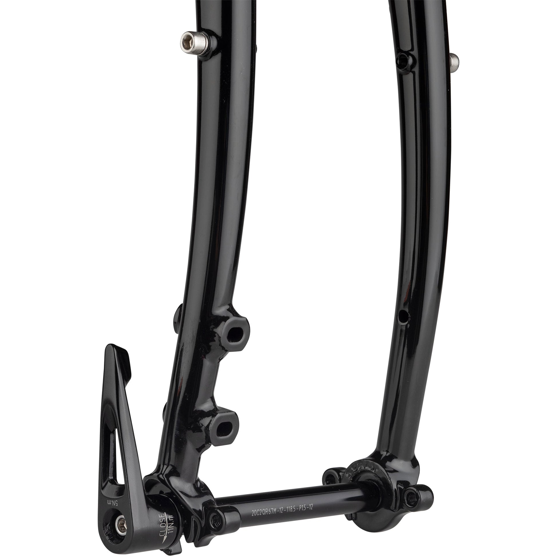 Like its QR cousin, the Disc Trucker Thru-Axle Fork is designed to mount racks and fenders and haul your worldly possessions. It’s also got modern touches like dynamo routing, compatibility with flat-mount disc brakes, and three-pack mounts on both fork blades to satisfy your deepest cargo desires. Captured 12mm thru-axles make tool-free removal and installation possible. Offered in 26˝ and 700c wheel sizes, the Thru-Axle fork clears 26 x 2.1˝ or 700c x 47mm tires. With a 1-1/8” steerer, it’s powder-coated and constructed using the same Chromoly steel as all our other frames and forks. Why? Because we swore a blood oath to steel and we intend to keep it.