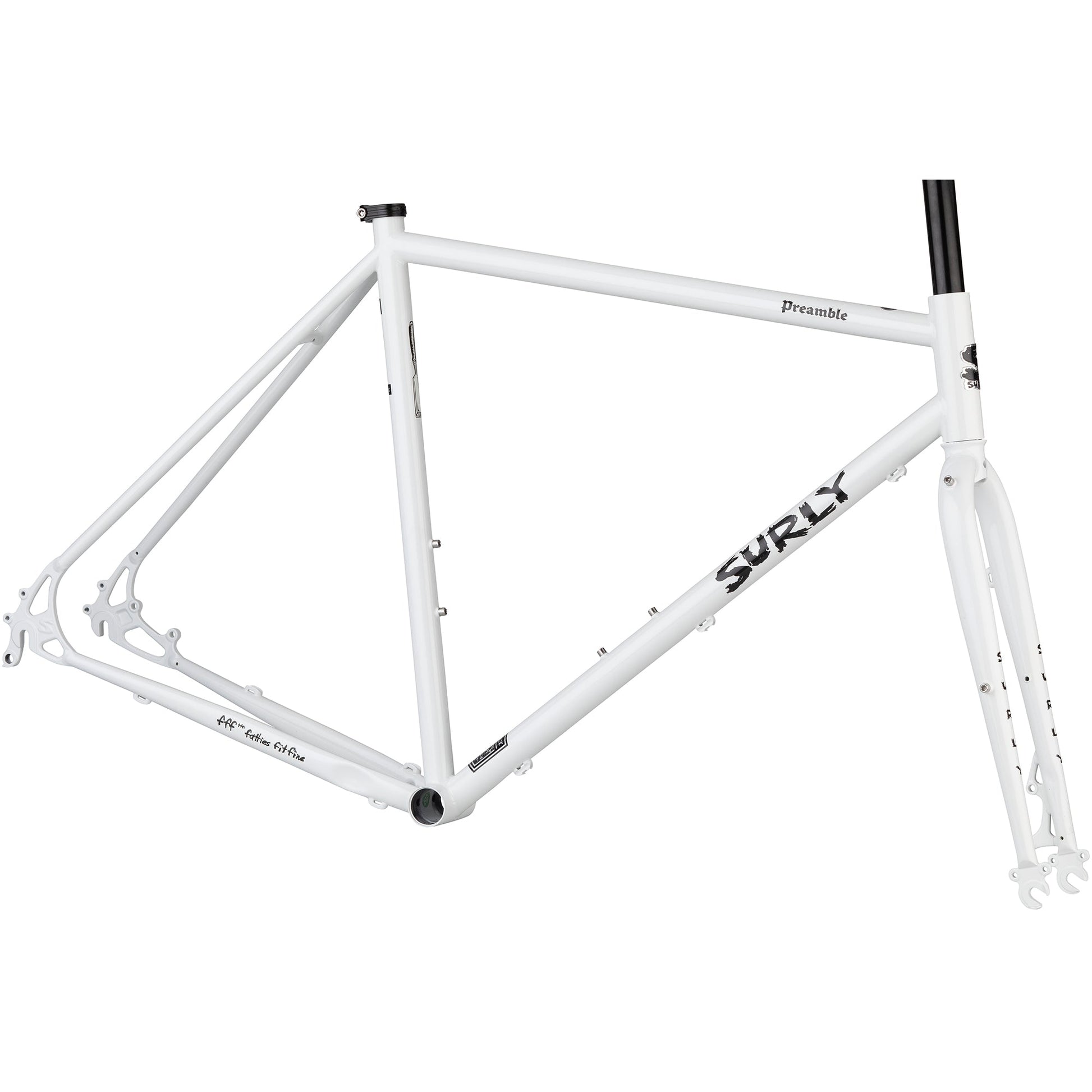 Preamble can run racks and fenders and carry a couple water bottles. Surly was raised on stealing basic cable, after all. Smooth and efficient on asphalt, Preamble’s double-butted main triangle provides a resplendent ride feel and withstands abuse from life’s inevitable potholes. Make it your own with flat bars, drop bars, a basket, or bags. On the road to steel euphoria, Preamble is the gateway drug.