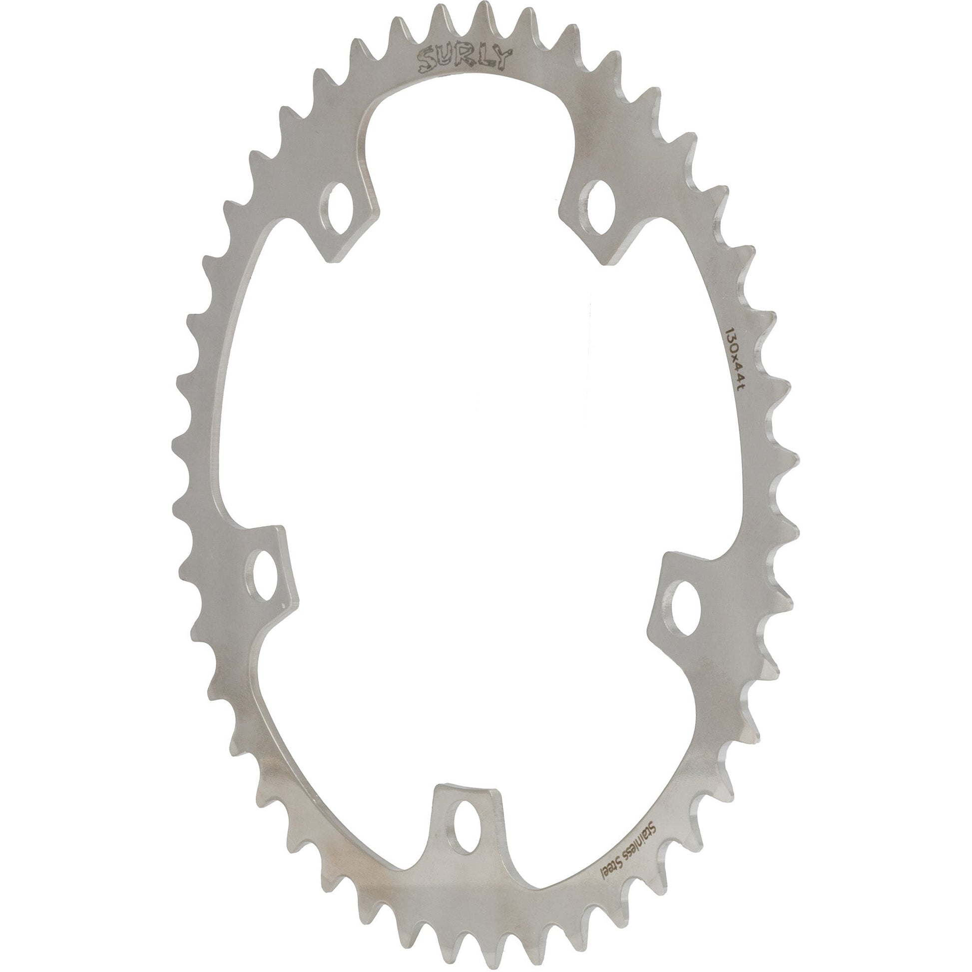 On a drivetrain with a steel chain and steel cogs, why wouldn’t you want to use a steel chainring? Most chainrings on the market are made from aluminum, which is 35% softer than stainless steel. A softer metal means a shorter lifespan. Enter the Surly Stainless Steel chainring, made from 304-grade stainless. Stainless is a rust and corrosion-resistant alloy steel that is known for its toughness. Like all things mechanical, it will eventually wear out. When it does, simply flip the chainring around and you’ll get another lifespan out of it.