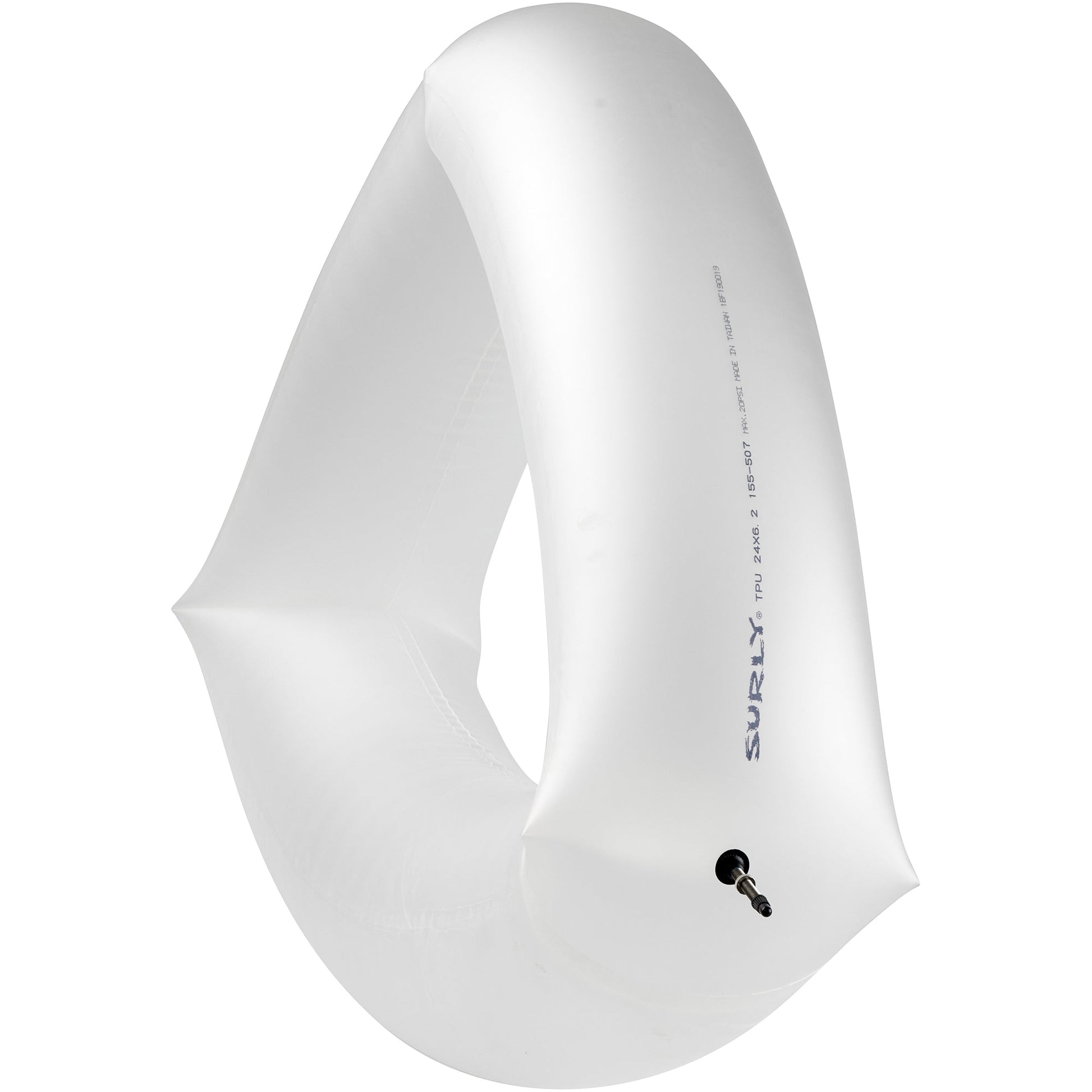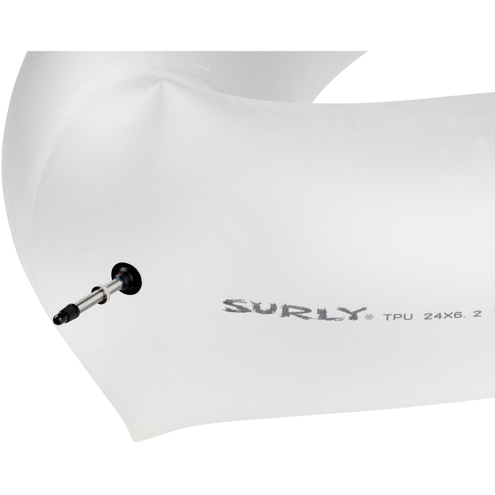 Our Surly TPU tube is made of a tough, airtight material lighter than traditional butyl innertubes. We specifically designed this TPU tube for the Molenda tire, so that we could let loose by making a custom, oversized 6.2" width that maintains its structure, even when operating at low pressures. With the TPU tube installed, you can air-down your Molenda tire to maximize contact patch for excellent flotation and traction over otherworldly terrain.